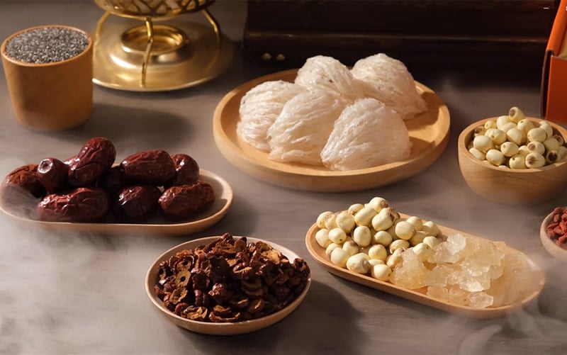 Một số người thích kết hợp yến với các nguyên liệu quen thuộc như táo đỏ, hạt sen hoặc đường phèn. Những nguyên liệu này giúp món yến có hương vị dễ dùng hơn.